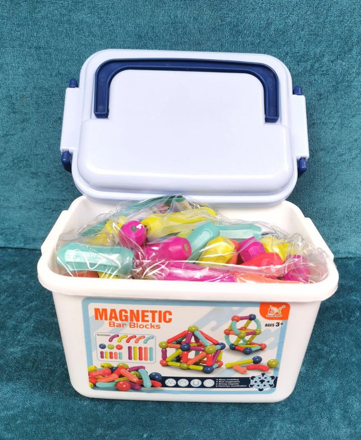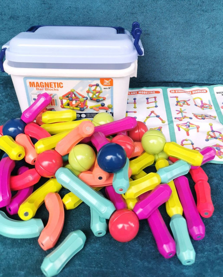 مكعبات مغناطيسية تعليمية مسلية للأطفال تضم 40 قطعة من الكور والستكس مع بوكس أنيق لحفظ اللعب. مصنوعة من خامة ممتازة ومغناطيس قوي يتيح للطفل تكوين أشكال مبتكرة وكتابة حروف وأرقام بسهولة. يأتي معها كتالوج يحتوي على عشرات التصميمات لمساعدة الطفل على الإبداع. تساعد المكعبات على تنمية الخيال والابتكار وتقوية التركيز والتآزر بين العين واليد وتعزيز المهارات الحركية الدقيقة والكبيرة. هدية قيمة ومناسبة لجميع الأعمار.
